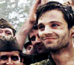 But anyway, overall, this scene is about overwhelming loss of everything Bucky knows, as well as an attempt to hide this as well as he can. And I don’t think it’s a coincidence that in the 4th and 5th gifs, Seb looks a lot like comics!Bucky does when he says goodbye to his younger sister, thinking he’ll never see her again and almost breaking down in tears, but unwilling to show her he’s scared. For your reference:
